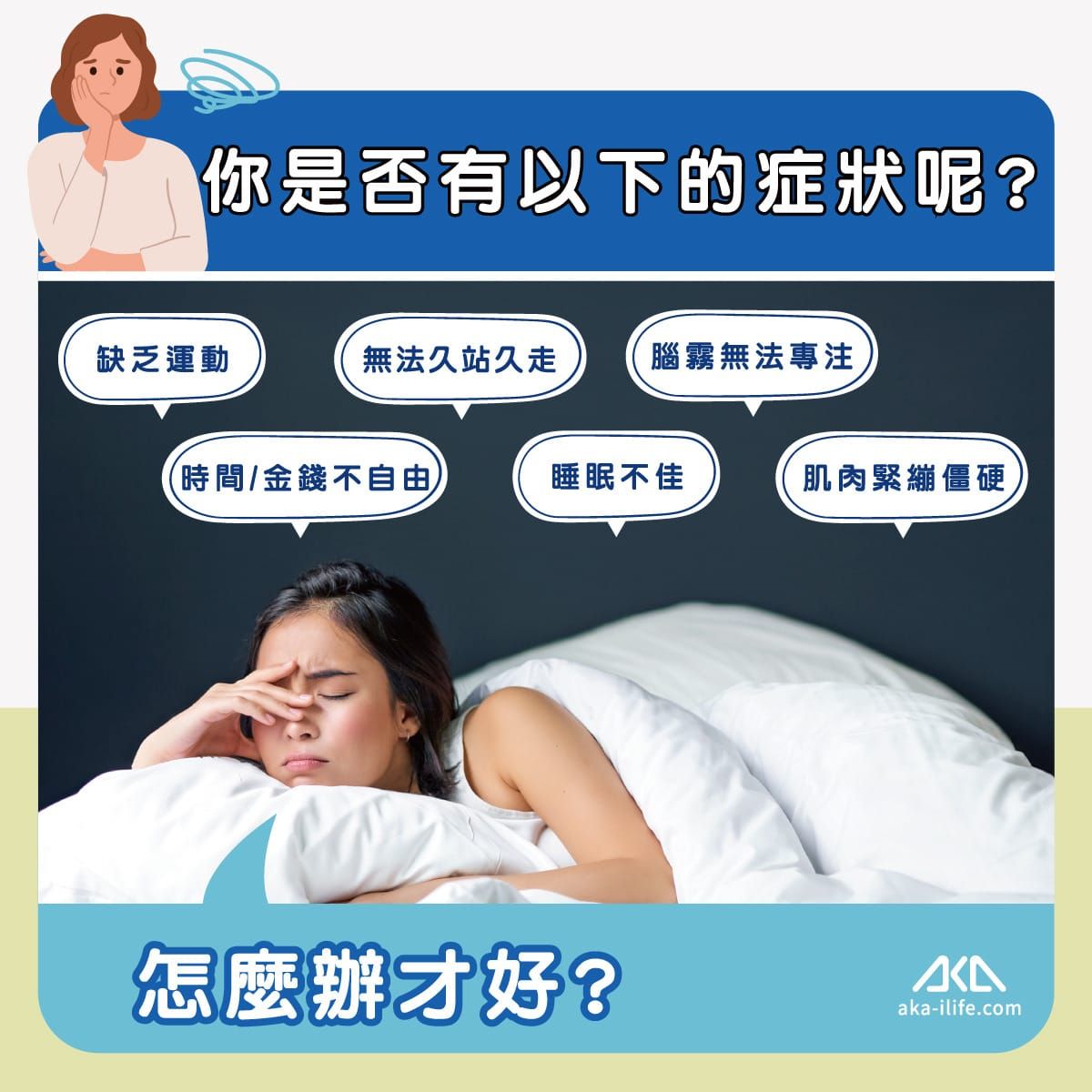 缺乏運動、無法久站久走、腦霧無法專心、時間/金錢不自由、睡眠不佳、肌肉緊繃僵硬?
