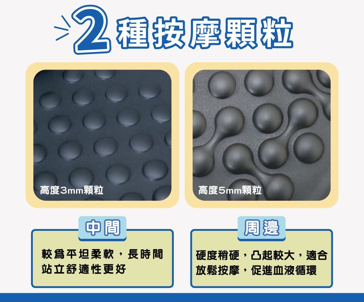 中間高度3mm的顆粒:較為平坦柔軟,長時間站立舒適性更好。