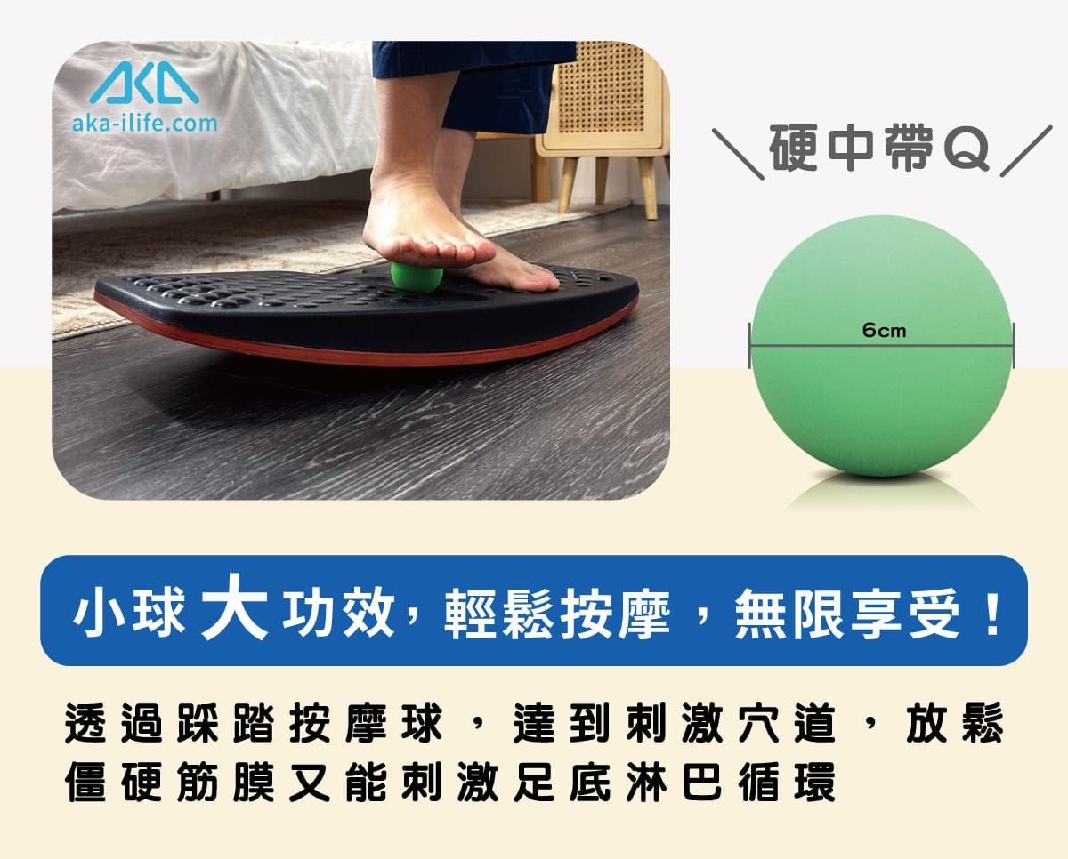 透過硬中帶Q的踩踏按摩球,達到刺激穴道,放鬆僵硬筋膜又能刺激足底淋巴循環