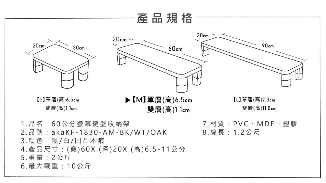 尺寸:(長)60*(深)20*(高)6.5-11公分